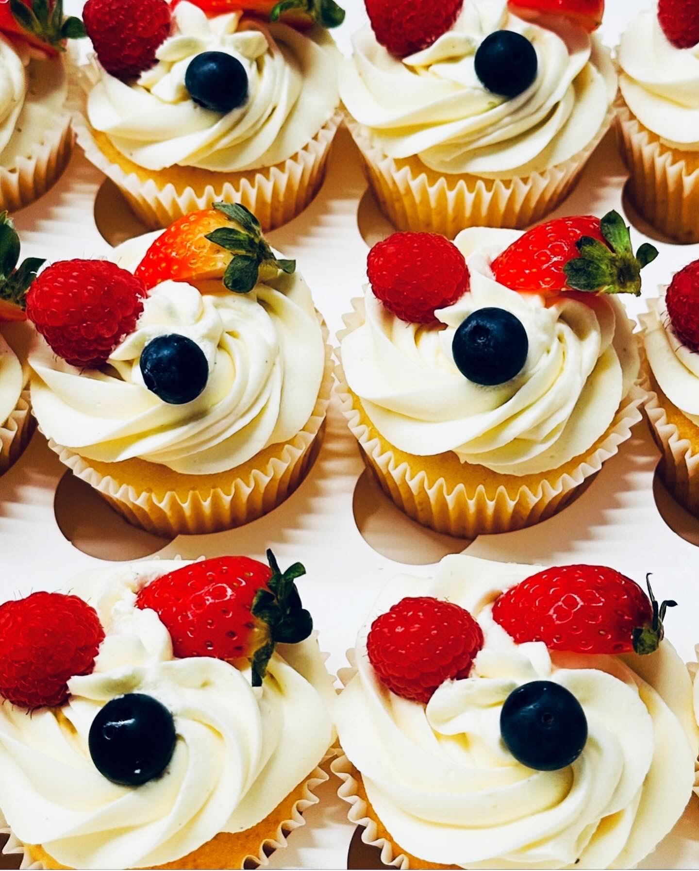 VANILLA BUTTERCREAM CUPCAKES WITH FRESH BERRIES